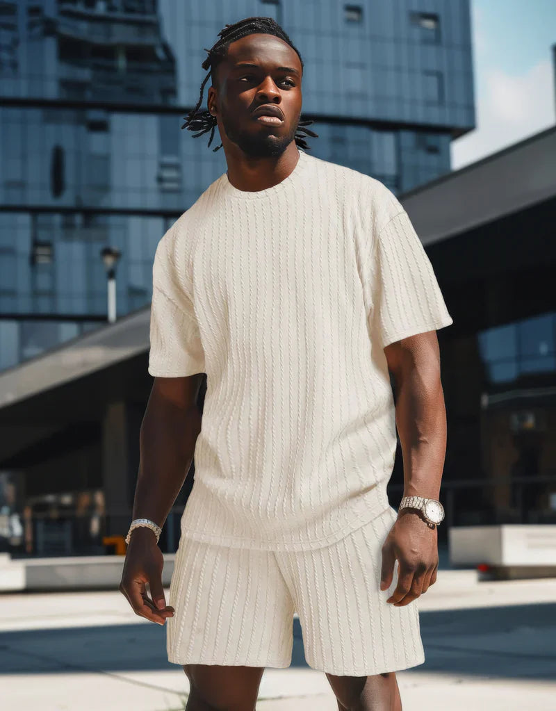 ๐งต Design & Details: Features a round neck tee paired with drawstring shorts and pockets โ lightweight, with short sleeves, making it ideal for warm weather.